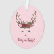 Reindeer and Flowers Merry and Bright on Pink Cera Ornament