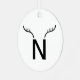 Simpe, Stylish Christmas Reindeer Antler custom Initial ornament with two silhouette deer antlers in black over a single letter in modern minimalist typography. The letter can easily be personalized with the initial of your loved one as the perfect festive gift.