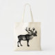 This tote bag has a black & white vintage image of Elk.