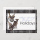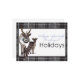 This charming holiday greeting card features a hand-illustrated reindeer and fawn standing together against a clean white backdrop, framed by a stylish black-and-gray plaid border. Elegant script and modern typography deliver the heartfelt message, “Wishing you and your family the most magical Holidays.” Perfect for spreading winter cheer, this card blends rustic woodland warmth with contemporary design for a festive, cozy touch.