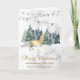 Watercolor forest, gold reindeer, and string lights on bokeh background make this a perfect Christmas or holiday greeting card for friends and family.