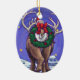 Cute Reindeer Christmas ornaments feature our original artwork of a reindeer decked out for Christmas with a bright red and white Santa Claus hat perched between a big rack of antlers. This humourous reindeer stands in a snowy landscape with a textured starry night sky and a fun blue and orange wavy border behind. On many of our unique gifts and accessories you'll find the fun reindeer coming and going with the reindeer's head on one side and the reindeer's backside on the other. This holiday loving caribou is wearing a holly wreath with a bright red bow on his behind. Share a smile today with that reindeer lover, caribou lover, animal lover, wild animal lover, fun artwork lover on your gift list this holiday season.