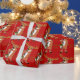 Paper decorated with cartoon of reindeer playing a saxophone.