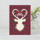 Stylish reindeer silhouette on black and red chequered Christmas Greeting card.