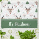Celebrate the holiday season with this customisable kitchen tea towel that features a cute reindeer pattern accented with decorated Christmas trees, holly berries, and delicate snowflakes. Two customisable text areas with the phrases, “Oh Deer,” and, “It’s Christmas Time,” add an extra touch of charm. Personalise this design with your own text or name to create a one-of-a-kind gift for people who love to cook, entertain, or add a personal touch to holiday celebrations.