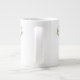 Seasonal Christmas coffee mug design features two festive reindeer pattern. Personalise the custom monogram text with a first name.