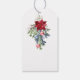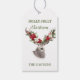 This design features a watercolor illustration of Reindeer head with Christmas poinsettias, pine branchlets and pine cones.