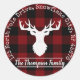The product design features a silhouette of a reindeer on a classic red and black buffalo plaid pattern. Combined with your own personalised text, this composition makes rustic, modern, and unique return address stickers.