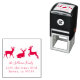 Whimsical Christmas season return address stamp featuring an illustration of three reindeer.