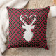 Reindeer silhouette on black and red chequered Throw Pillow. Black stripes have a touch of rustic style.
