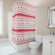 Red and White Reindeer and Snowflakes Fair Isle Christmas holiday Seasonal Design Shower Curtain.