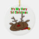 An adorable baby's 1st Christmas design on first Christmas T-shirts, bodysuits, magnets, cards, stickers, keepsake ornaments, and more featuring a cute reindeer design and red and green text that reads It's My Very 1st Christmas!