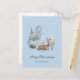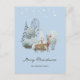 Cute Merry Christmas postcard featuring a watercolor winter scene with a buck and a doe in a snowy forest and shining stars above them. Easily personalise this beautiful holiday postcard with your family name, return address and additional text as desired.