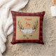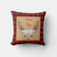Reindeer with White Roses on Plaid Peace and Joy Cushion