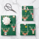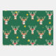 Cute Reindeer Wrapping Paper on green background, perfect for wrapping Christmas presents