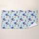 A bath towel set with a repeating pattern. Illustrated with a pair of blue scandinavian deer wearing red scarves. With decorative markings on their bodies. As well as a trio of red and blue christmas trees with a star on top. Fancy snowflakes sprinkled around.