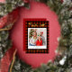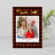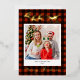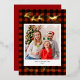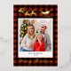 Send some joy to your friends and family with this warm and festive Christmas greetings card featuring gold foil reindeers pulling sleigh on a black and red plaid background. Add you favourite holiday picture.