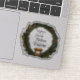 a stunning wreath adorned with holly and pine cones, the sticker also showcases the Nativity scene, a reminder of the true spirit of Christmas.