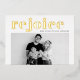 Merry Christmas | Invite guests to your event with this customisable gold foil Christmas card. It features REJOICE in bold typography. Personalise this modern holiday card by adding your details. This custom photo Christmas card is available in other colours and cardstock. Matching items are available.