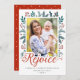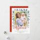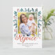 Send your Christmas Wishes with this Holiday Photo card that feature Holly Berries Leaves with a Stunning Rejoice Script to highlight your greeting message.