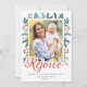 Rejoice Script Festive Christmas Red Berries Photo Holiday Card