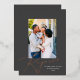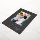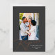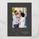 This gorgeous Christmas photo card features a classic dark gray background with the greeting "Rejoice" in raised rose gold foil a single vertical photo. The greeting continues in flat white ink with "in the Lord always". Followed by your name. This design accommodates a single vertical photo on the front of the card. On the reverse side is the same dark gray background, to which you can add another photo or additional text by selecting the "edit using the design tool" option. Add the "wow" factor with a real pressed foil holiday card this year!