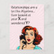 Add a touch of wit and humour as you or a friend celebrate newfound independence with this clever 1950s comic book-style artwork. Featuring a vintage-inspired woman deep in thought, the quote "Relationships are a lot like Algebra... Ever look at your x and wonder y?" delivers a witty epiphany, drawing a humourous analogy between math and the mysteries of relationships. With her retro charm and perfectly coiffed hair, she embodies the mix of sass and insight that’s perfect for reflecting on life’s twists and turns.