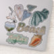 Beach themed stickers with seagull, beach word art, bleached painted wooden hearts, and shells.