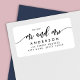 Stylish address label featuring the words "Mr and Mrs" in a black relax cursive script that's perfect for newlyweds.