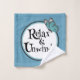 You'll get three lovely towels in varying shades of teal blue with white accents when ordering the set. Pretty floral and polka dot patterns and a wash/face cloth with wording that says: "Relax and Unwind" in a bold, playful font beneath the wings of a butterfly.