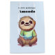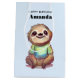 Birthday gift bag with an adorable illustration featuring a happy looking sloth wearing a green t-shirt. Sitting cross-legged looking relaxed.