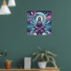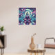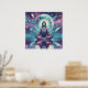 Medication poster. A beautiful serene relaxing ai illustration of a blue and purple scene with a woman medicating in front of the moon, planets, stars and galaxy to give you a peaceful vibe. Pretty for a meditation room or a yoga studio.