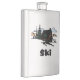 The product is a good size and came exactly as it was pictured.  The lid is not attached to the flask, which could be dangerous on drunken nights... The print came out surprisingly well and looks very sharp.  Would definitely recommend.
