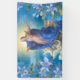 Featuring a custom designed traditional Catholic religious image of the Assumption of the Blessed Virgin Mary with the angel and accented with blue flowers on each side.