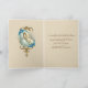 This is a beautiful traditional religious Catholic image of the Blessed Virgin Mary holding the Baby Jesus in her arms. Blue flowers and a turquoise background accent this lovely card. All text and fonts can be modified.