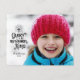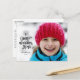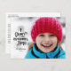 This Christmas postcard features a lovely typography design and a full photo. The lettering reads "Glory to the Newborn King", topped with a shining cross. Add your names and the year below. The black text overlays a full photo that is displayed horizontally (for best results, choose a photo with extra unfocused space on the left side). The back of the postcard includes space to write a personal message to your loved ones.