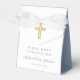 Personalised Religious Cross Boy Blue First Communion Favour Box. Part of the Dusty Blue Script Cross Boy First Communion Suite with matching invitation, stationery and first communion party accessories.