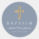 Religious Cross Dusty Blue Boy Baptism Classic Round Sticker