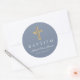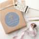 Personalised Religious Cross Dusty Blue Boy Baptism Classic Round Sticker.