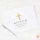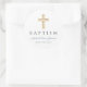 Personalised Religious Cross Dusty Blue Script Boy Baptism Classic Round Sticker.