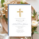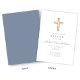 Personalised Religious Cross Dusty Blue Script Boy Baptism Invitation.