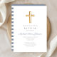 Religious Cross Dusty Blue Stripes Boy Baptism Invitation