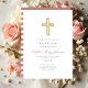 Religious Cross Dusty Pink Stripes Girl Baptism Invitation