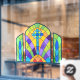 Religious Cross Faux Stained Glass Decorative Window Cling