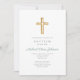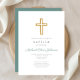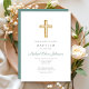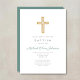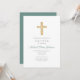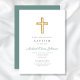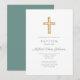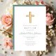 Personalised Religious Cross Green Script Boy Baptism Invitation.