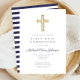 Religious Cross Navy Blue Boy First Communion Invitation