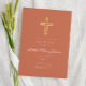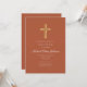 Personalised Religious Cross Terracotta Script Boy Baptism Invitation.