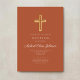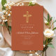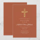 Religious Cross Terracotta Script Boy Baptism Invitation