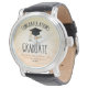 A graduation is a time for rejoicing, and this religious gift and giveaway shares that joy with the graduate. A black cap and diploma with a yellow-gold tassel and ribbon are in the middle of the card in the centre of the starburst background. Congratulations and ask God’s blessings on the new graduate.