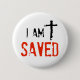 This design features the Christian phrase, "I am saved" in red and black letters, along with a black cross.